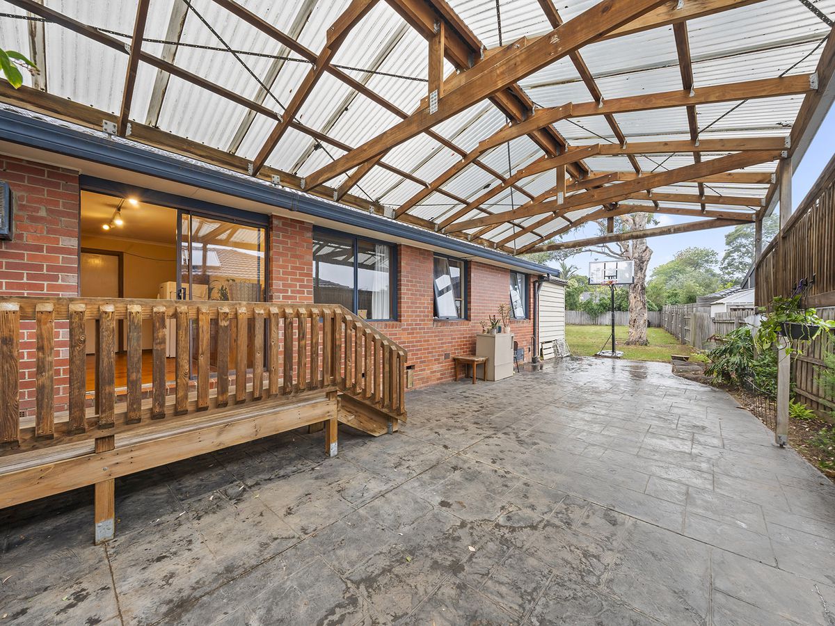 Traditional charm and everyday comfort define the well-presented interior. The home features an updated kitchen and meals area with an abundance of cupboard space, flowing effortlessly through to a spacious family room. From here, sliding doors open out to a pattern concrete, covered entertaining area, overlooking the large established rear garden—ideal for outdoor gatherings, children, or future landscaping plans.